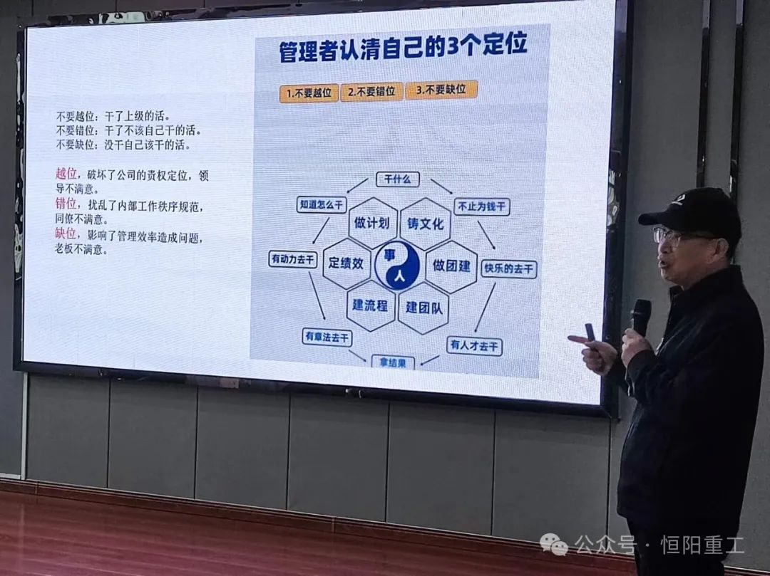 歲月不居,天道酬勤!  為提高公司職員素養(yǎng),增強崗位從業(yè)技能,提升研發(fā)創(chuàng)新思路和銷售技巧,加強公司部門間和諧高效、有機結(jié)合能力,以實現(xiàn)公司健康、可持續(xù)發(fā)展,2024年2月19日,恒陽重工邀請中國海洋大學管理學院蔡禮彬教授來我司蒞臨授課,進行了為期一天的創(chuàng)新思維與管理營銷培訓。 公司多功能...